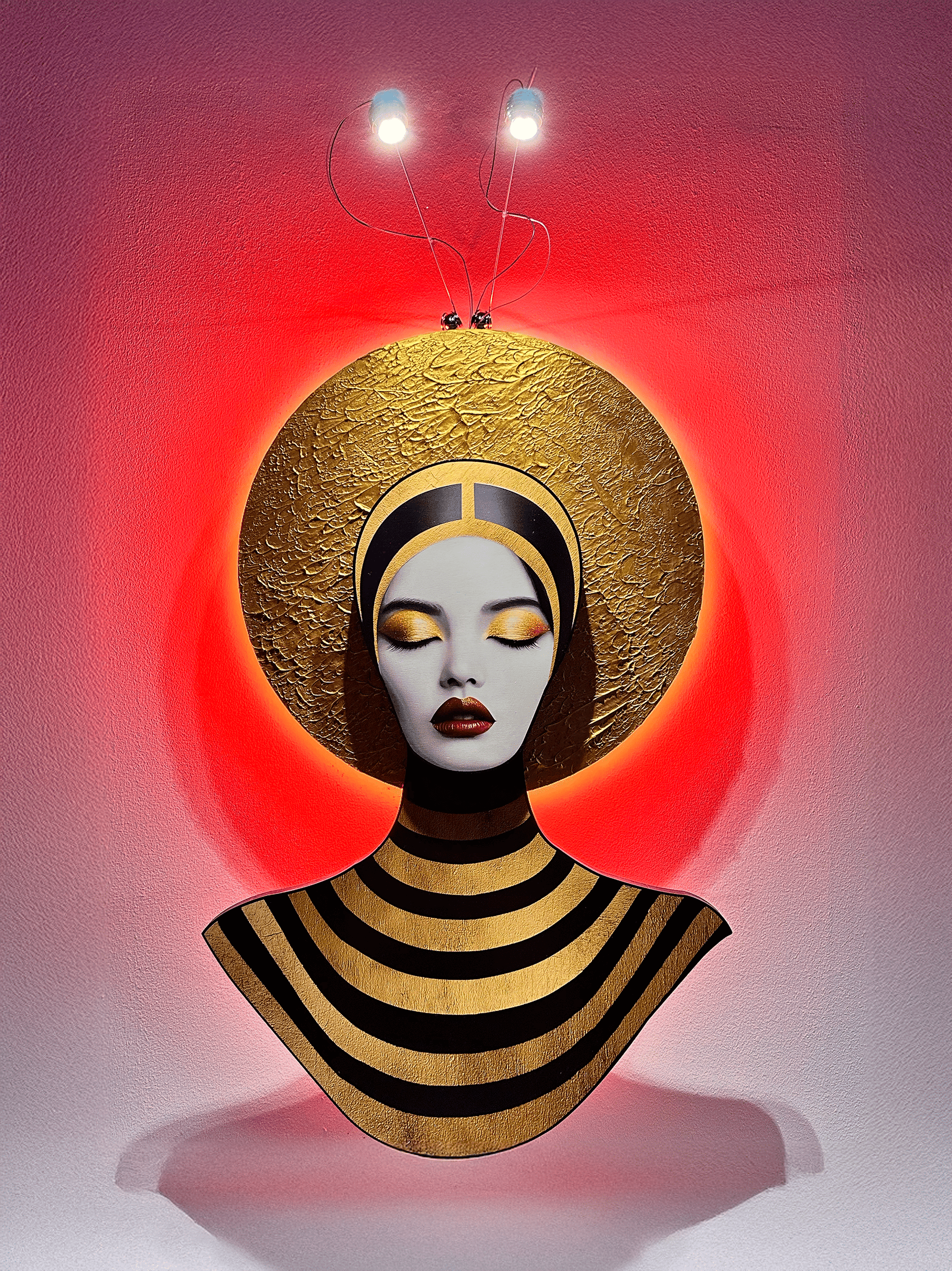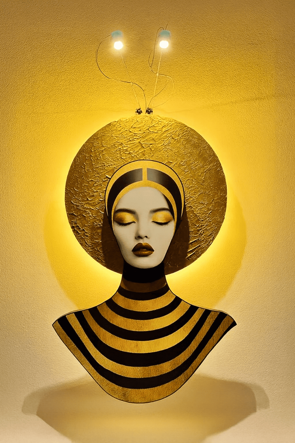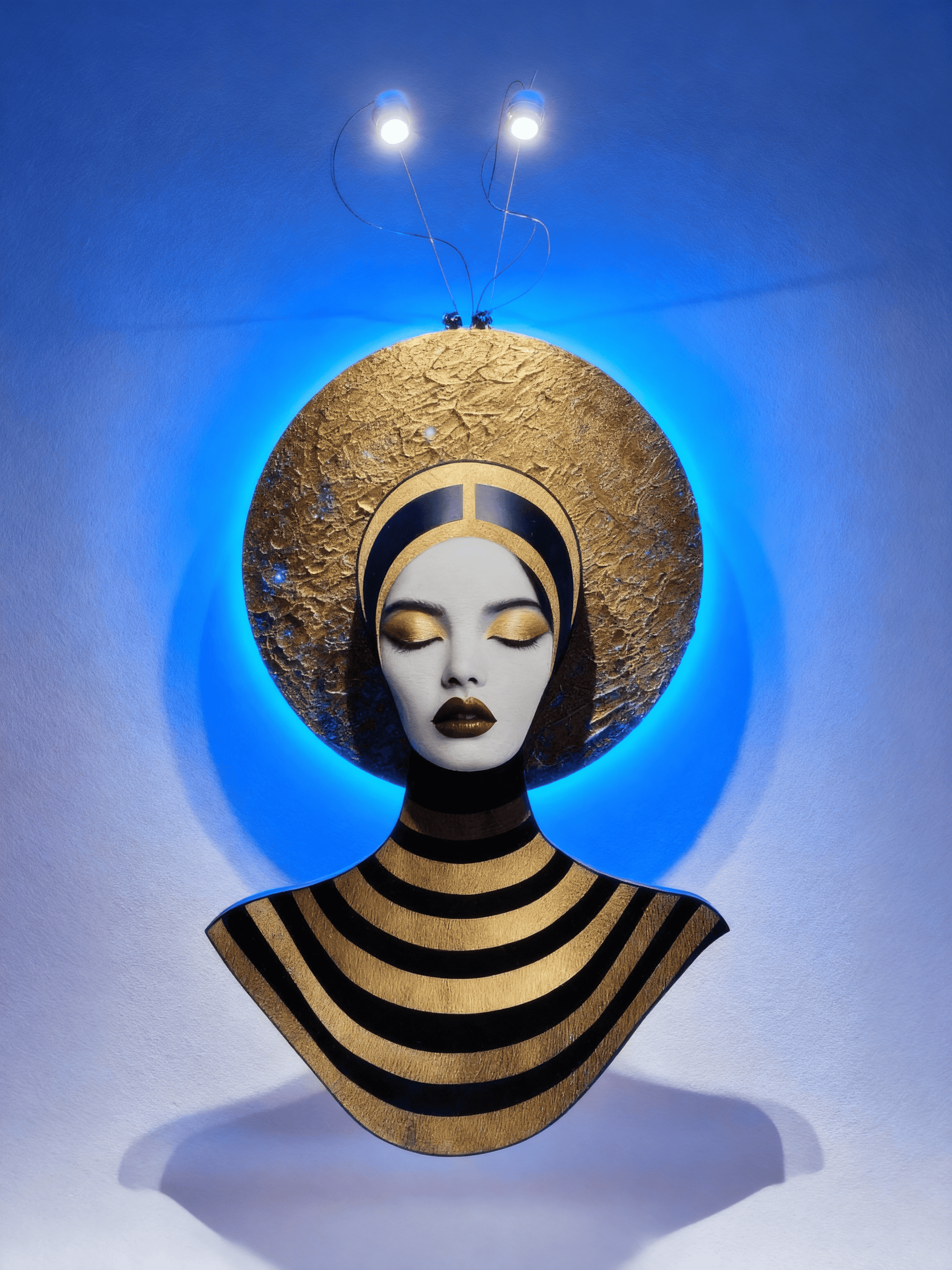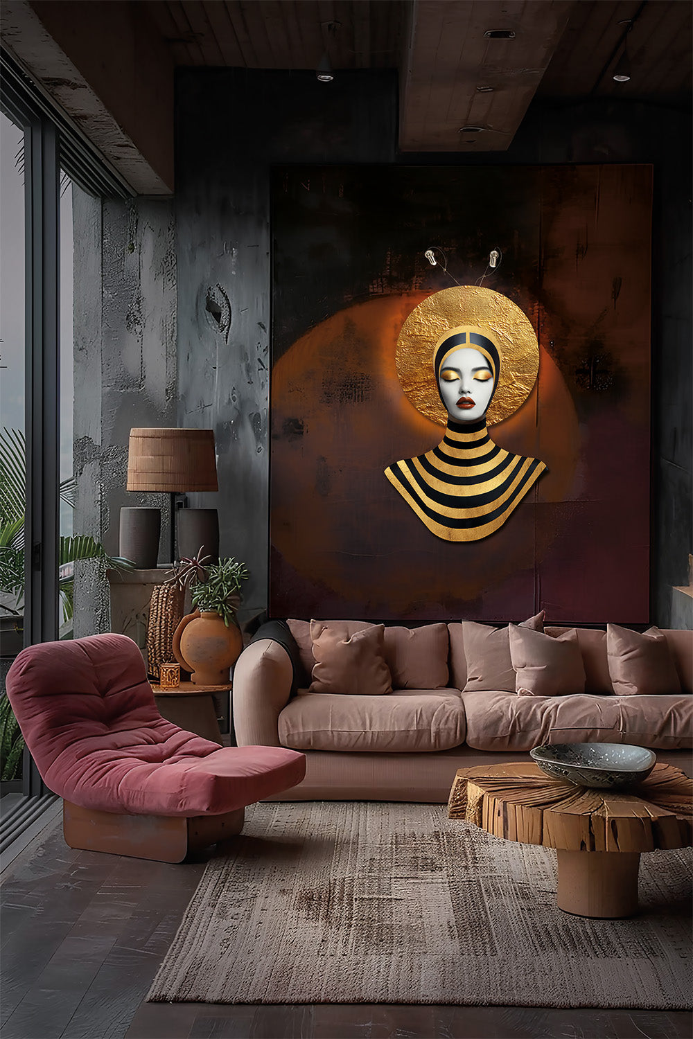 Il volto stilizzato e il disco dorato donano eleganza e unicità a ogni ambiente.