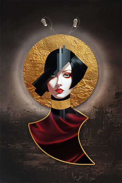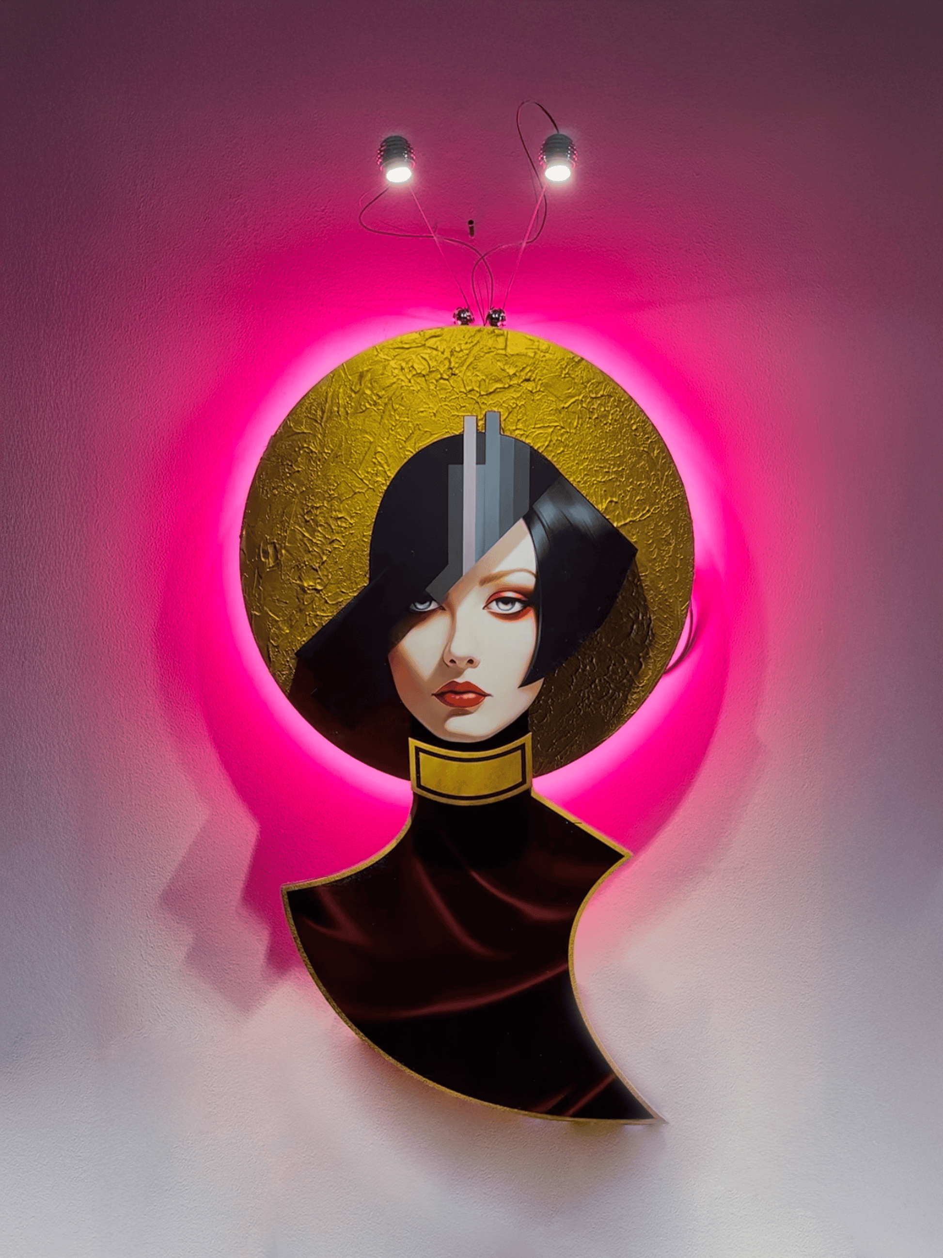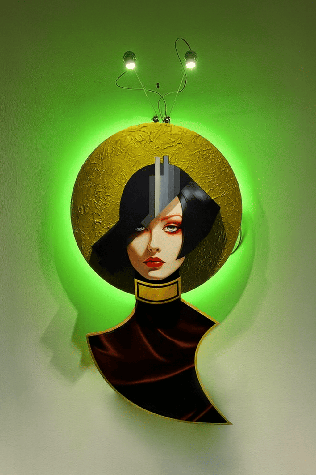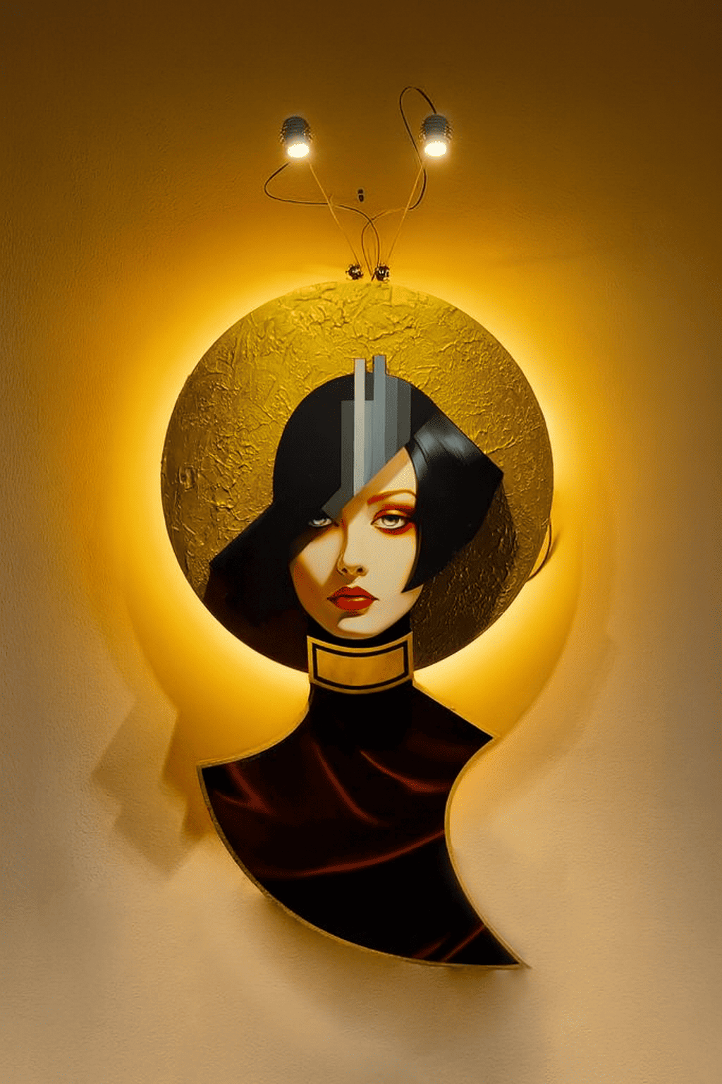 Il volto stilizzato e il disco dorato donano eleganza e unicità a ogni ambiente.
