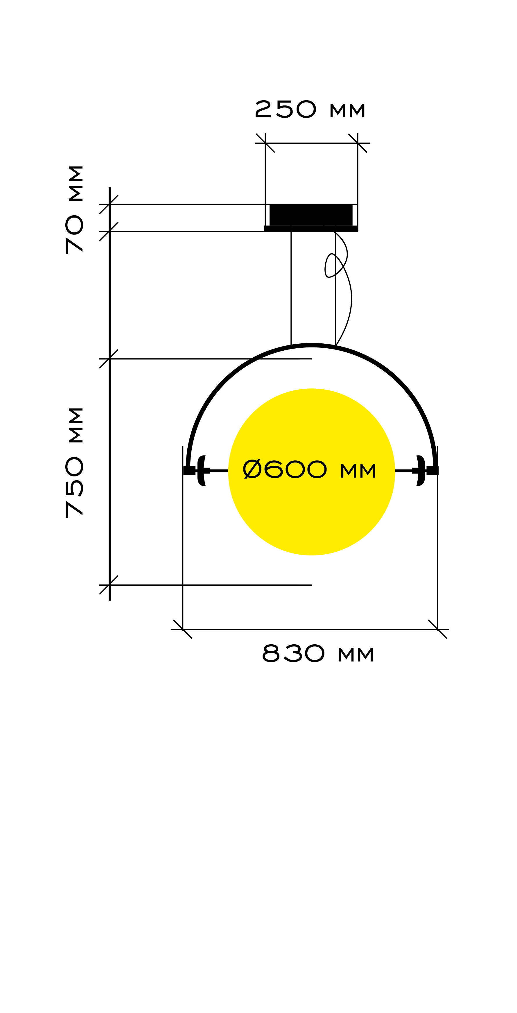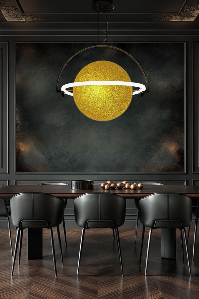 Anello in resina bicomponenteStruttura in metallo verniciato nerocon 5.700 mm Strip LED19w mt tot.108W 24V10.830 lumen 3.000K